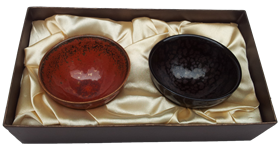 黑色油滴天目茶杯+精製鐵紅釉燒茶杯